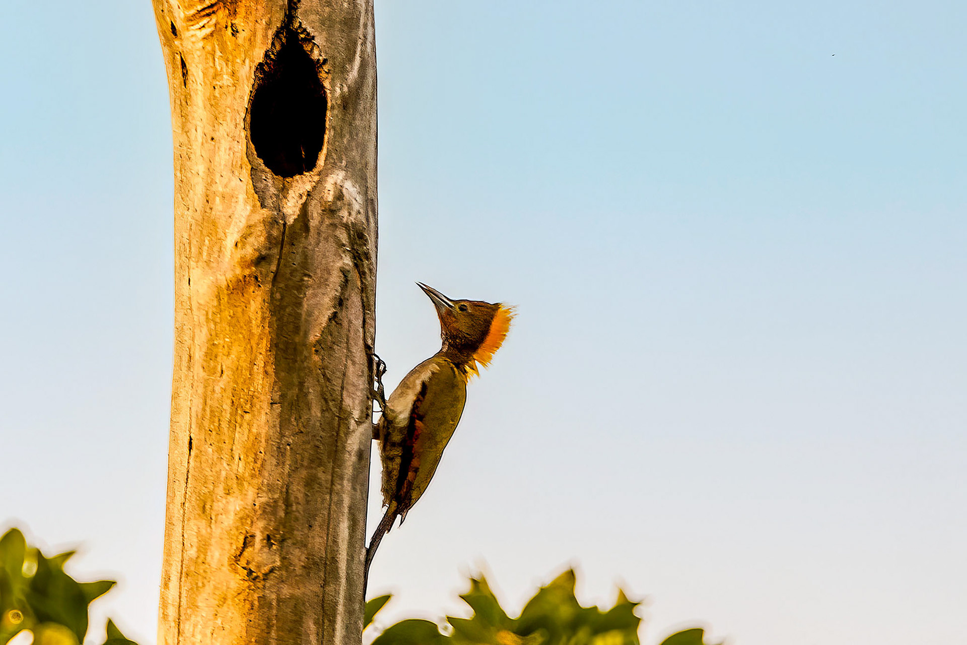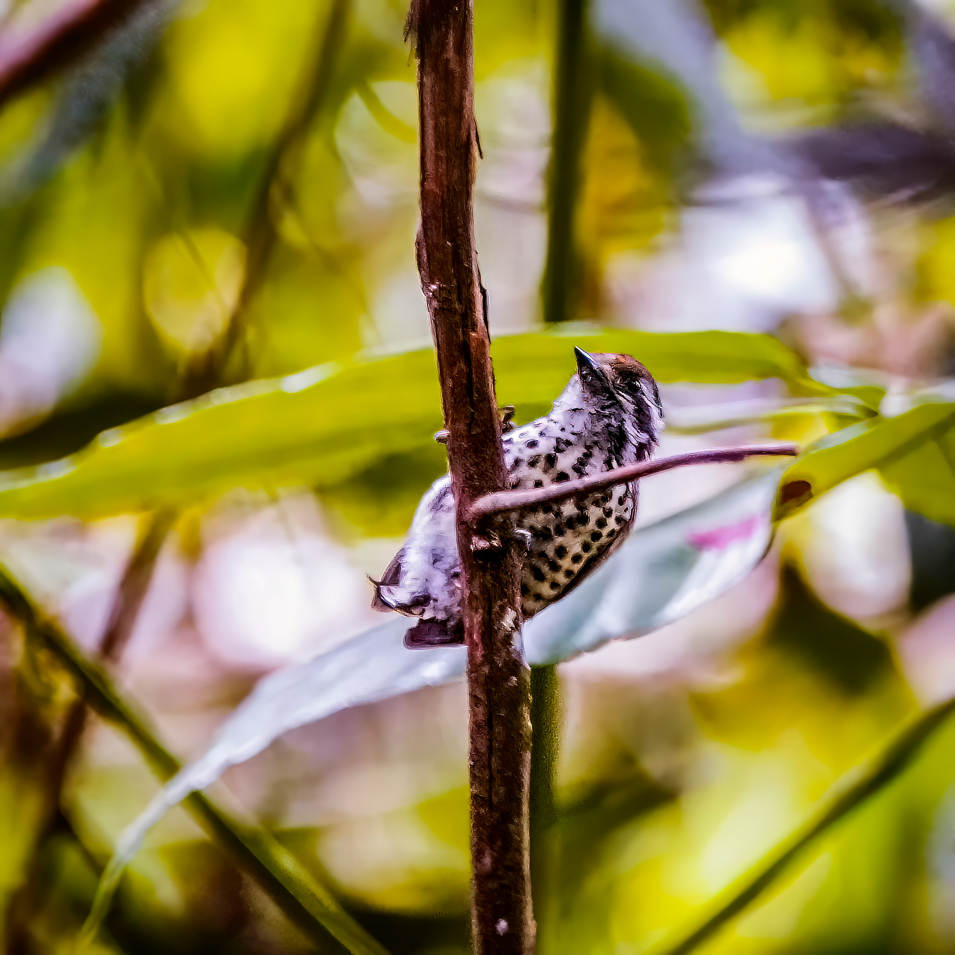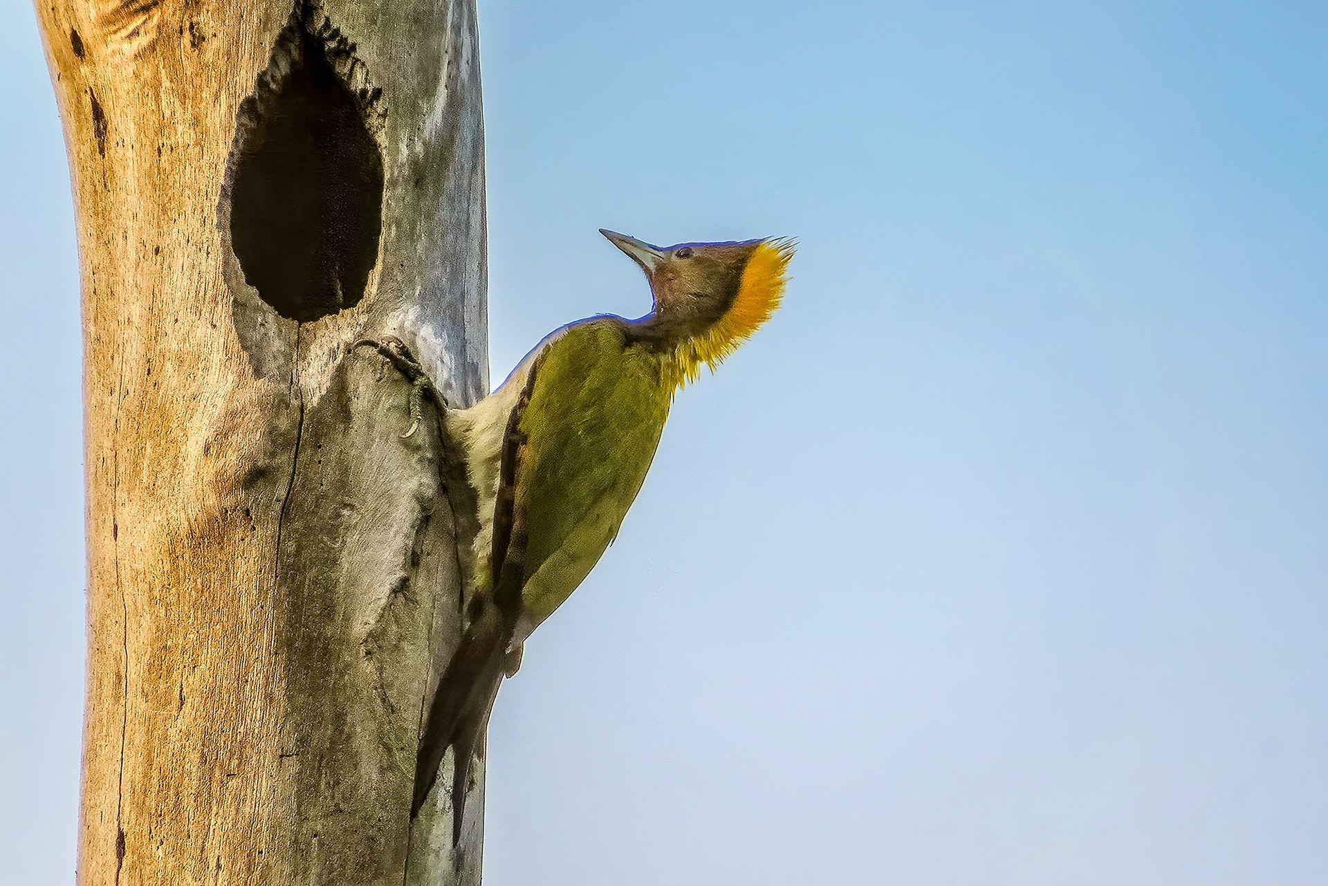Man findet den Burmagrünspecht in einer Vielzahl von Lebensräumen, von feuchten Laubwäldern und Mangroven bis hin zu Plantagen und Gärten, wo er geschickt von Baum zu Baum navigiert. Seine Ernährung besteht hauptsächlich aus Ameisen und Termiten, die er mit seiner langen, klebrigen Zunge aus Rindenspalten und Totholz fischt. Dabei ist sein charakteristisches "Hämmern" an Baumstämmen nicht nur ein Zeichen der Nahrungssuche, sondern auch eine wichtige Form der Kommunikation, um sein Revier zu markieren oder Partner anzulocken.