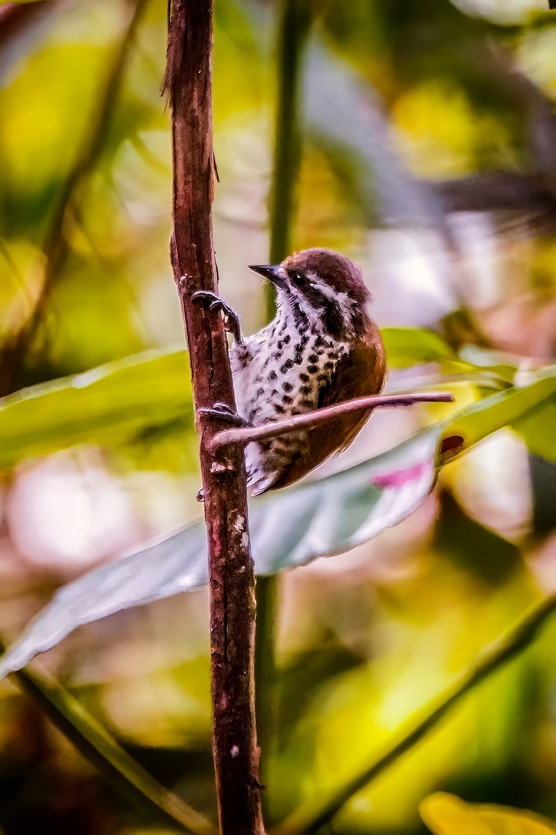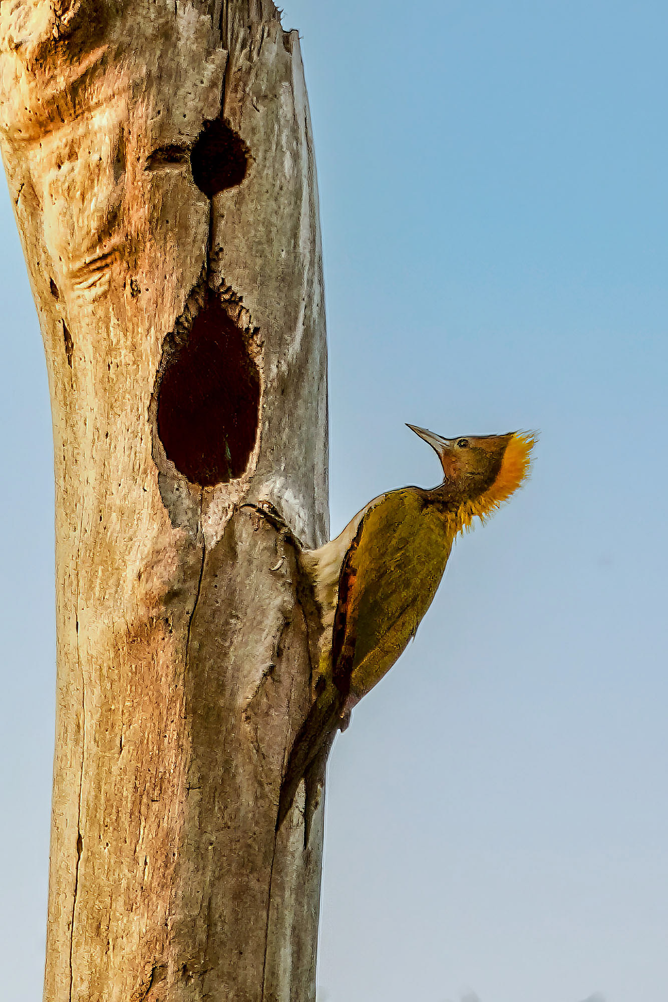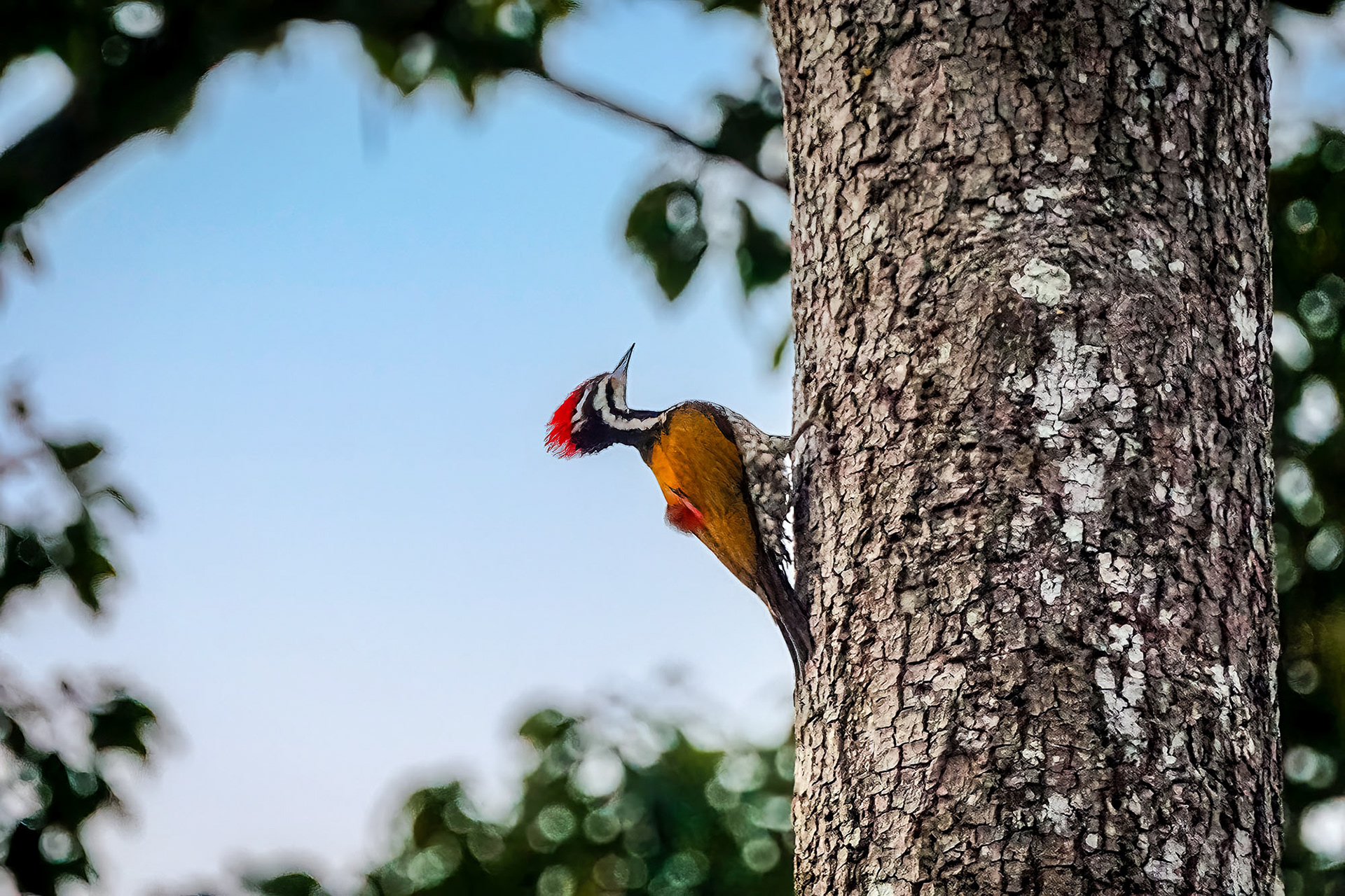 Man findet den Burmagrünspecht in einer Vielzahl von Lebensräumen, von feuchten Laubwäldern und Mangroven bis hin zu Plantagen und Gärten, wo er geschickt von Baum zu Baum navigiert. Seine Ernährung besteht hauptsächlich aus Ameisen und Termiten, die er mit seiner langen, klebrigen Zunge aus Rindenspalten und Totholz fischt. Dabei ist sein charakteristisches "Hämmern" an Baumstämmen nicht nur ein Zeichen der Nahrungssuche, sondern auch eine wichtige Form der Kommunikation, um sein Revier zu markieren oder Partner anzulocken.